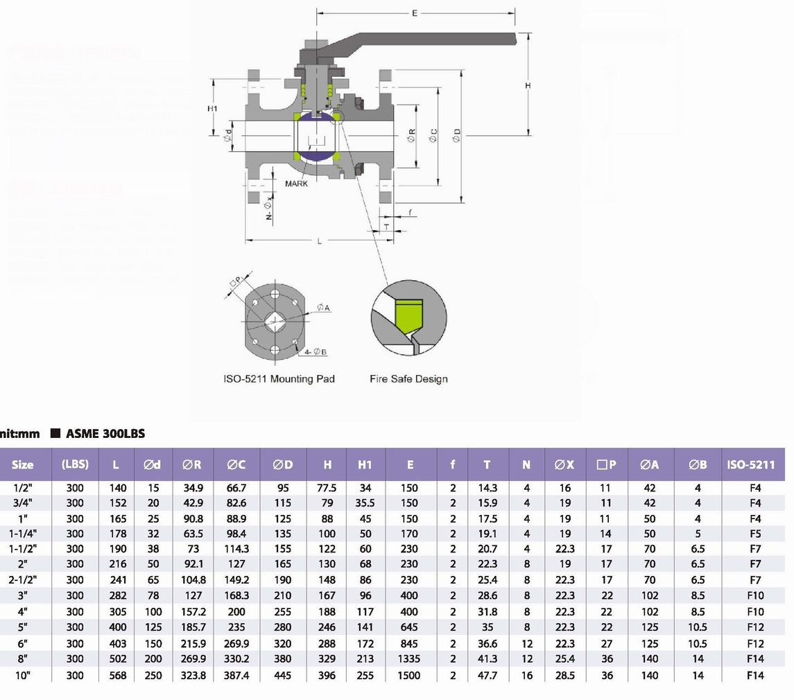 球閥公稱通徑:DN15250mm 1/2"~10
