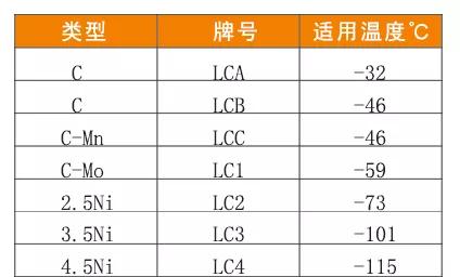 低溫鑄鋼件材料牌號和適用溫度