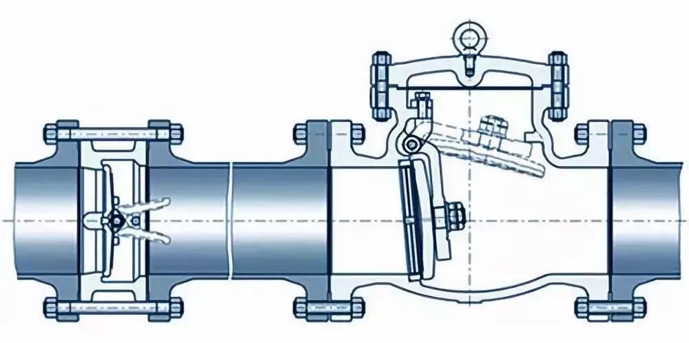 止回閥必須安裝在泵的出口、出口控制閥之前的位置,以便檢修止回閥。一般泵的出口第一道是軟連接(減震器),接下來是止回閥,再接下來是隔斷閥(如蝶閥、閘閥、截止閥等)